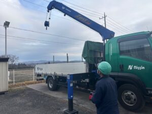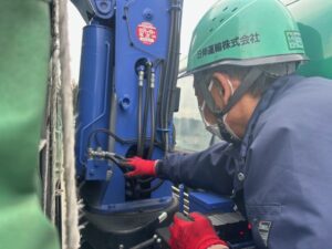先日、ユニック車の目視での点検や安全装置の確認を行いました。
