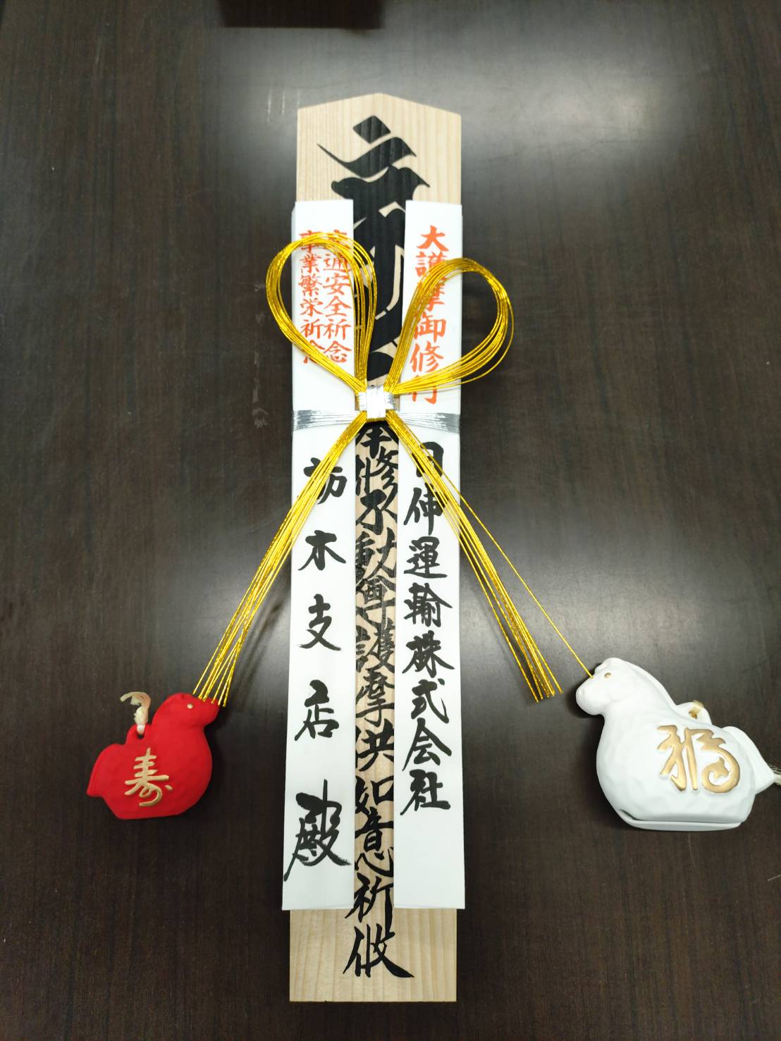 新しい木札をいただきましたので皆で大願成就を祈願するとともに、弊社の経営理念にある「高品質物流」の達成に向けて支店一丸となって精進したいと思います‼️