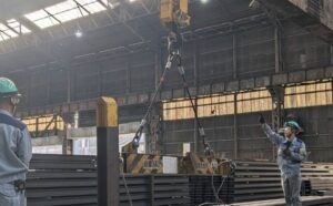 ブラザーの元で玉掛作業の補助を行いながら、仕事の流れを覚えていき、先輩たちの合図や指示を見て動いていきます。
