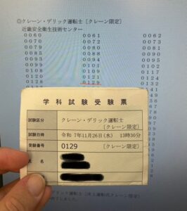 今回、会社の資格取得支援制度を使わせて頂き、クレーンデリック運転士(クレーン限定)受けさせて頂く事となりました。